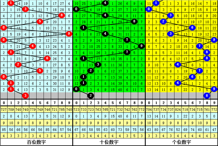 在最近10期开奖中,跨度振幅分别出现:6-3-4-2-0-5-3-1-3-6,有上升迹象,跨度波动范围较广,本期看好跨度大幅波动,注意跨度6。